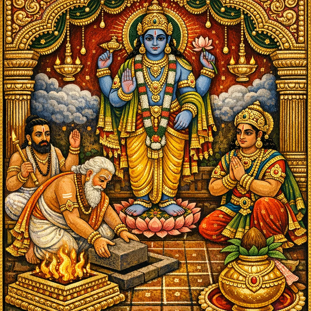 शय्यायां मण्डपे प्राच्यां मण्डले हरिमर्चयेत् जुहुयाज्जनयित्वाग्निं समिधो द्वादशीस्ततः