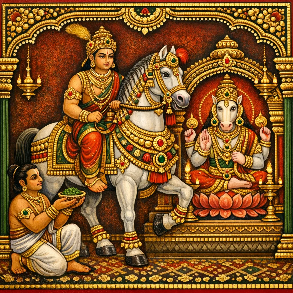 तत्र देवकुले जातः स्ववाक्यं परिपालय कुले जातस्त्वमश्वानां मित्रं मे भव शास्वतम्