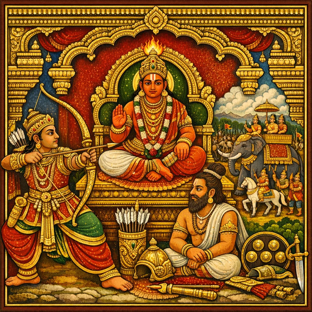 Precise operational metrics and biomechanics: stance geometry and spacing (vitasti/aṅgula-based), bow brace/clearance set to twelve aṅgulas, standardized bow and arrow lengths (3–4 hasta bows; 10–12 muṣṭi arrows), and a procedural aiming line maintained between the eye and the ear.