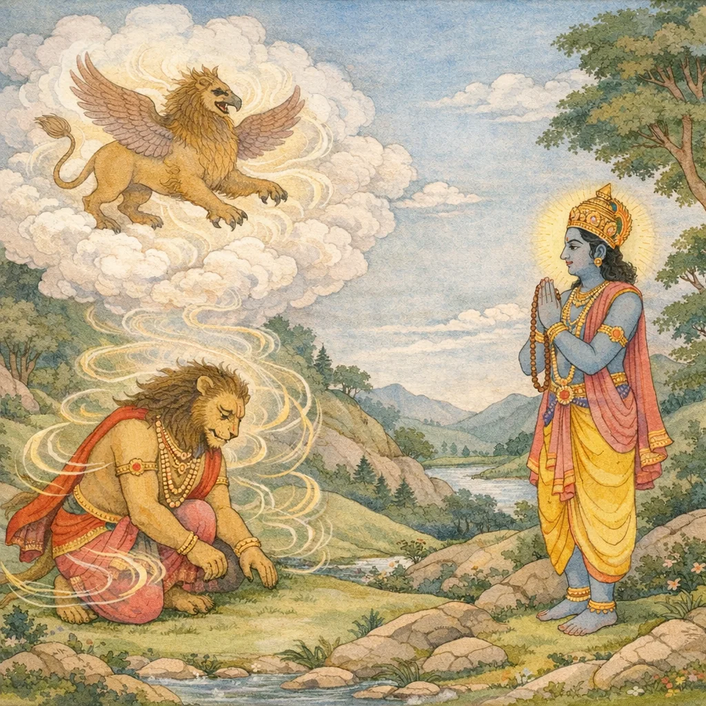 नृसिंह नामक उस प्रचण्ड तेज को समेटने हेतु परमेश्वर ने उसी प्रयोजन से महाबली रुद्र—वीरभद्र—का स्मरण किया।