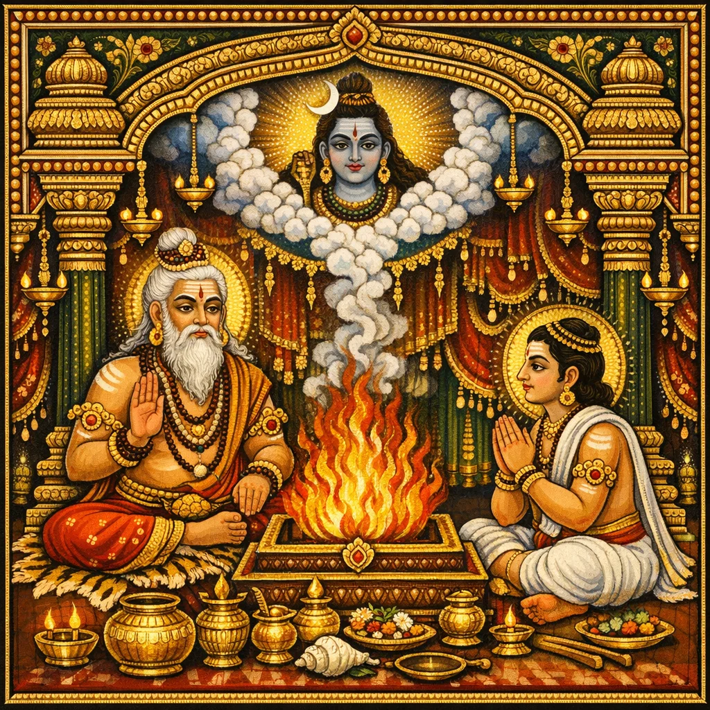 Untuk menghadirkan kedekatan-Nya, setelah mempersembahkan tiga oblation dengan mūlāṇu, hendaknya memuja Śiva yang ditegakkan dalam kumbha (tempayan ritual), lalu menghadirkan pāśa-sūtra (tali ritual).