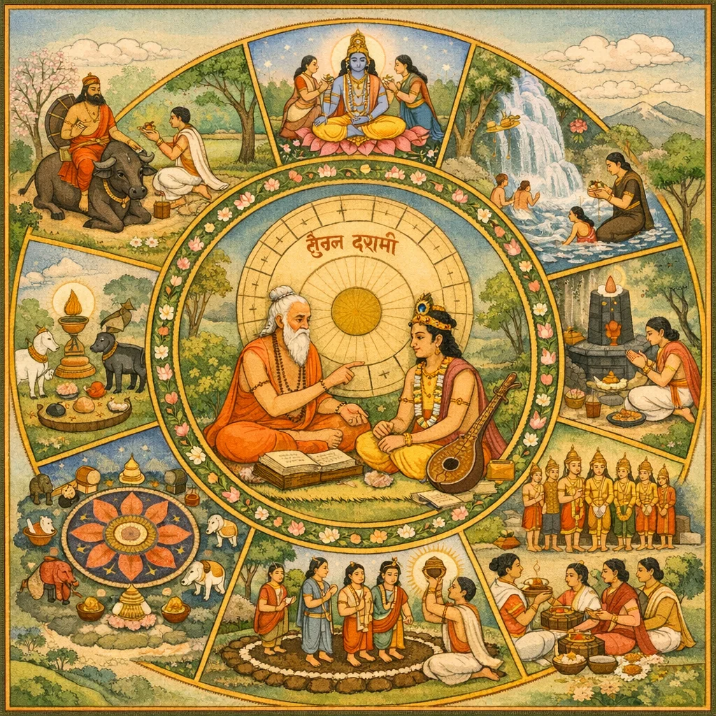 Daśamī pada paruh terang bulan Āṣāḍha dikenang suci oleh Manu dan para ṛṣi lainnya. Pada hari itu, mandi suci, japa, dana, atau homa menganugerahkan jalan menuju surga.