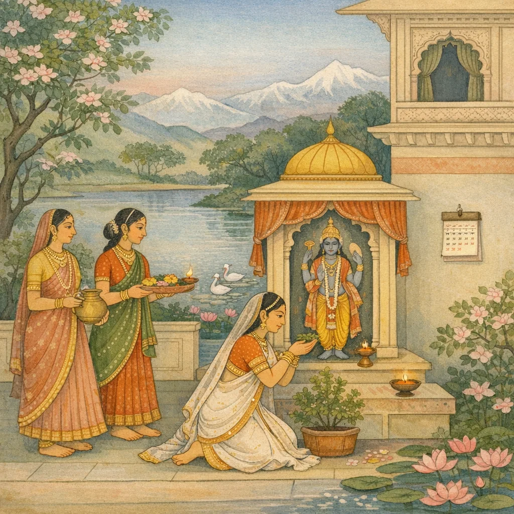 Kāmada berkata: “Dengan anugerah Viṣṇu milikmu, aku hidup tenteram. Wahai yang amat bijaksana, jelaskanlah—engkaulah sebab bagi pertanyaan dan jawaban.”