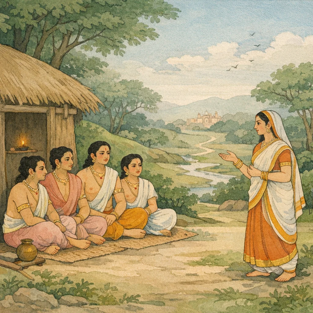 Vaiśampāyana said: Then Kuntī spoke to Bhīmasena, Arjuna, and the twin brothers as well. She asked them about setting out, and at that time they all assented, replying, “So be it.” The scene underscores disciplined consent and family solidarity—action is taken not by impulse but through consultation and willing agreement.
