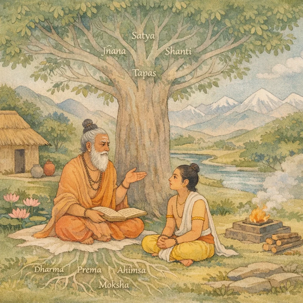 The disciple said: “From where have I come, and from where have you come? Tell me truly that supreme reality. From what source have all beings arisen—both the immovable and the moving?”