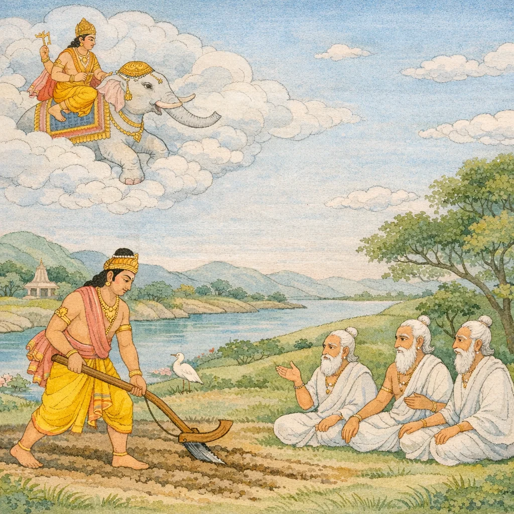Indra said: “O King, what is taking place here with such extraordinary effort? O royal sage, what is it that you intend—because of which this earth is being ploughed?”