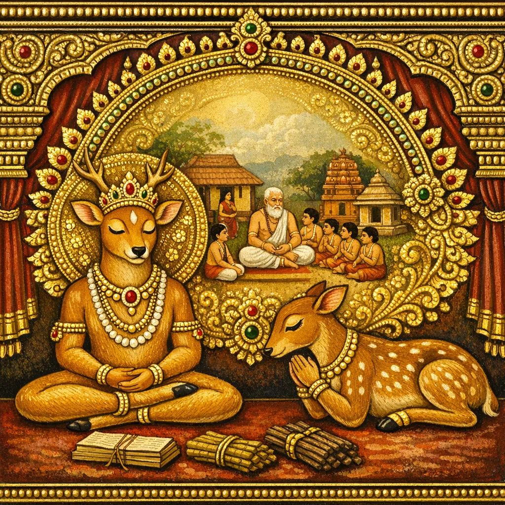 Mṛga–Mṛgī Saṃvāda: Karmakāraṇa and Pūrvajanma-kathana (The Deer and Doe Dialogue on Karma and Past Birth)
