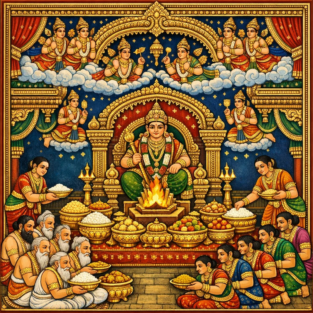 彼が捧げたマルト・ソーマに満足したマルト神たちは、喜びをもって、尽きることのない食を授けた――それはあらゆる願いを満たすものであった。