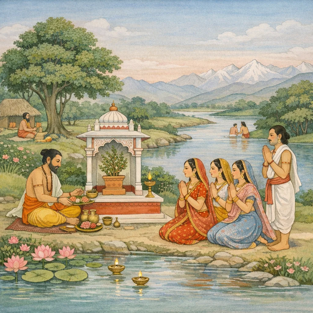 第42章「Parābhava(敗北/覆滅)」は、アシュヴァメーダ(Aśvamedha)に連なる戦場の緊迫を描く。軍勢が集う中、ハヌマーン(Hanumān)がプシュカラ王(Puṣkala)へ進み、プシュカラはその力を挑み、ヴィーラマニ王(Vīramaṇi)になぞらえて挑発する。同時に物語はバクティ(bhakti)の確信を差し挟み、ラグナータ(Raghunātha)を憶念すれば「悲しみの海」は乾き、ラーマ(Rāma)の恩寵によって越え難きものも渡れると説く。 ハヌマーンは軽率を戒め、ヴィーラマニは勇猛で守護されていると語るが、争いは戦車の一騎討ちへ進み、矢の応酬となる。そこではクシャトリヤ(kṣatriya)の規範—年齢と力量、若者への慈悲、名誉の掟—が論じられ、ヨーギニー(yoginī)やピシャーチャ(piśāca)、山犬などの凄惨な戦の情景が重なる。終盤、プシュカラは戦術と信仰の言葉をもって優勢を確立し、敵は気絶して潰走し、プシュカラの勝利がバクティに彩られた英雄譚として結ばれる。