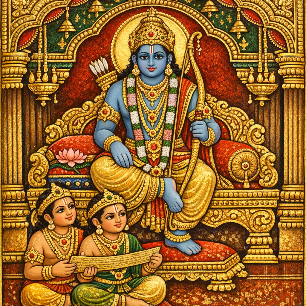 ರಾಜ್ಯವನ್ನು ನಡೆಸಿ, ಯಜ್ಞಾದಿ ಕ್ರತುಗಳನ್ನು ನೆರವೇರಿಸಿ, ದೇವರಿಂದ ಪೂಜಿತನಾದ ಅವನು ಸ್ವರ್ಗಕ್ಕೆ ತೆರಳಿದನು—ಪೌರರೊಂದಿಗೆ, ಕಿರಿಯ ಸಹೋದರರೊಂದಿಗೆ, ಸೀತೆಯ ಪುತ್ರರೊಂದಿಗೆ ಹಾಗೂ ತನ್ನ ಜನಪದದ ಜನರೊಂದಿಗೆ.