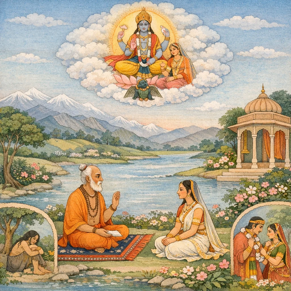 ಶೇಷನು ಹೇಳಿದರು— ಈ ರೀತಿಯಾಗಿ ಧರ್ಮೋಪದೇಶಗಳನ್ನು ಶ್ರವಣಿಸುತ್ತಿರುವಾಗ ವಸಂತ ಋತು ಸಮೀಪಿಸಿತು; ಆ ಸಮಯದಲ್ಲಿ ಮಹಾತ್ಮರು ಯಜ್ಞಾದಿ ಪವಿತ್ರ ಕ್ರಿಯೆಗಳ ಆರಂಭ ಮಾಡುತ್ತಾರೆ.