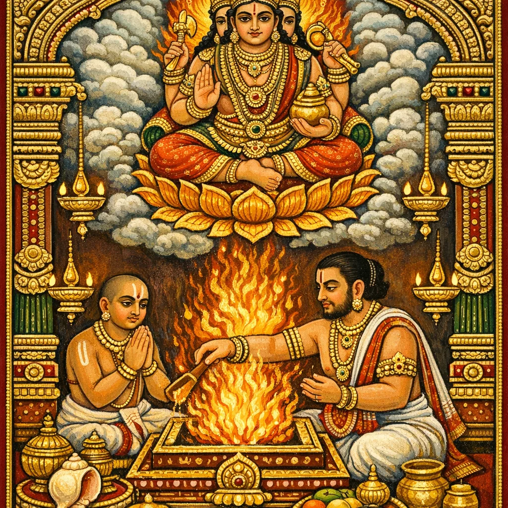 ເມື່ອກະທຳພິທີພາຍໃນເຮືອນແລ້ວ ຈາກນັ້ນທີ່ປະຕູ ຄວນນຳສິ່ງເຫຼົ່ານັ້ນ (ເສດເຫຼືອ/ຂອງທີ່ໃຊ້ແລ້ວ) ໄປຖວາຍແກ່ໄຟ (Hutāśana). ສ່ວນພາຊະນະດິນເຜົາ ກຳນົດໃຫ້ຖິ້ມທິ້ງເທົ່ານັ້ນ.