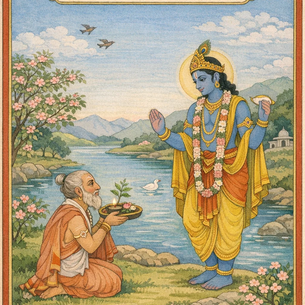 ພັກຕິອັນໝັ້ນຄົງຕໍ່ພຣະເກສະວະ (Keśava) ເກີດຂຶ້ນ ແລະ ບໍ່ມີການພັດພາກຈາກບັນດາໄວສະນະວະ (Vaiṣṇava). ຜູ້ນັ້ນດໍາລົງຊີວິດໂດຍປອດພະຍາດ ແລະ ຈິດບໍ່ເອົາໃຈໄປຫາອະທັມ।