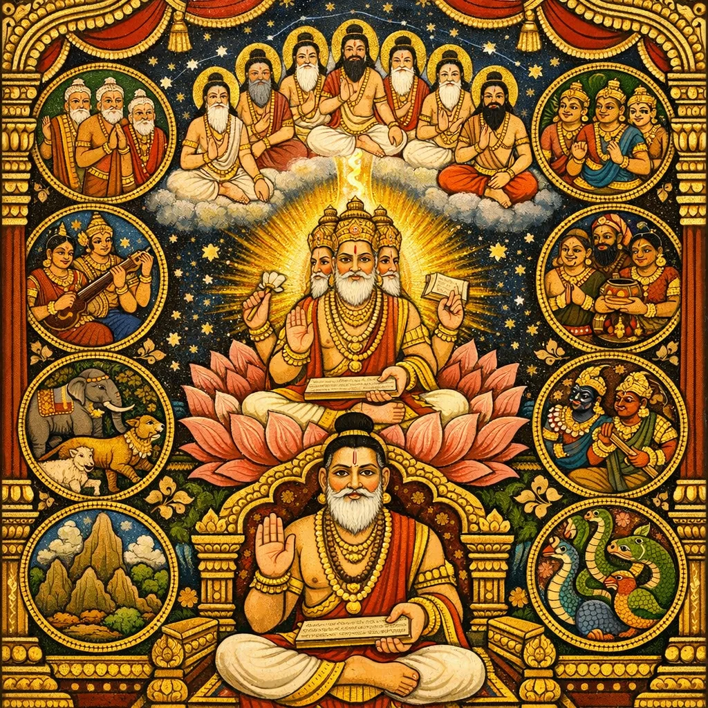ഭൃഗു, അങ്കിരസ്, മരീചി, പുലസ്ത്യ, പുലഹ, ക്രതു, അത്രി, വസിഷ്ഠൻ—ഇവരാണ് ബ്രഹ്മാവിന്റെ എട്ട് പുത്രന്മാർ.