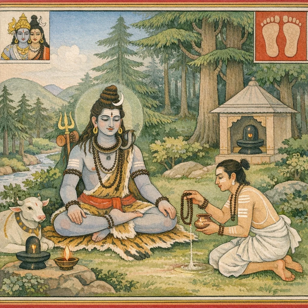 അവിടെ ദേവാദിദേവനായ ത്രിപുരാരിയായ രുദ്രൻ ശിലാതലത്തിൽ തന്റെ പാദമുദ്ര സ്ഥാപിച്ചു—നാസ്തികർക്കുള്ള വ്യക്തമായ നിദർശനമായി।