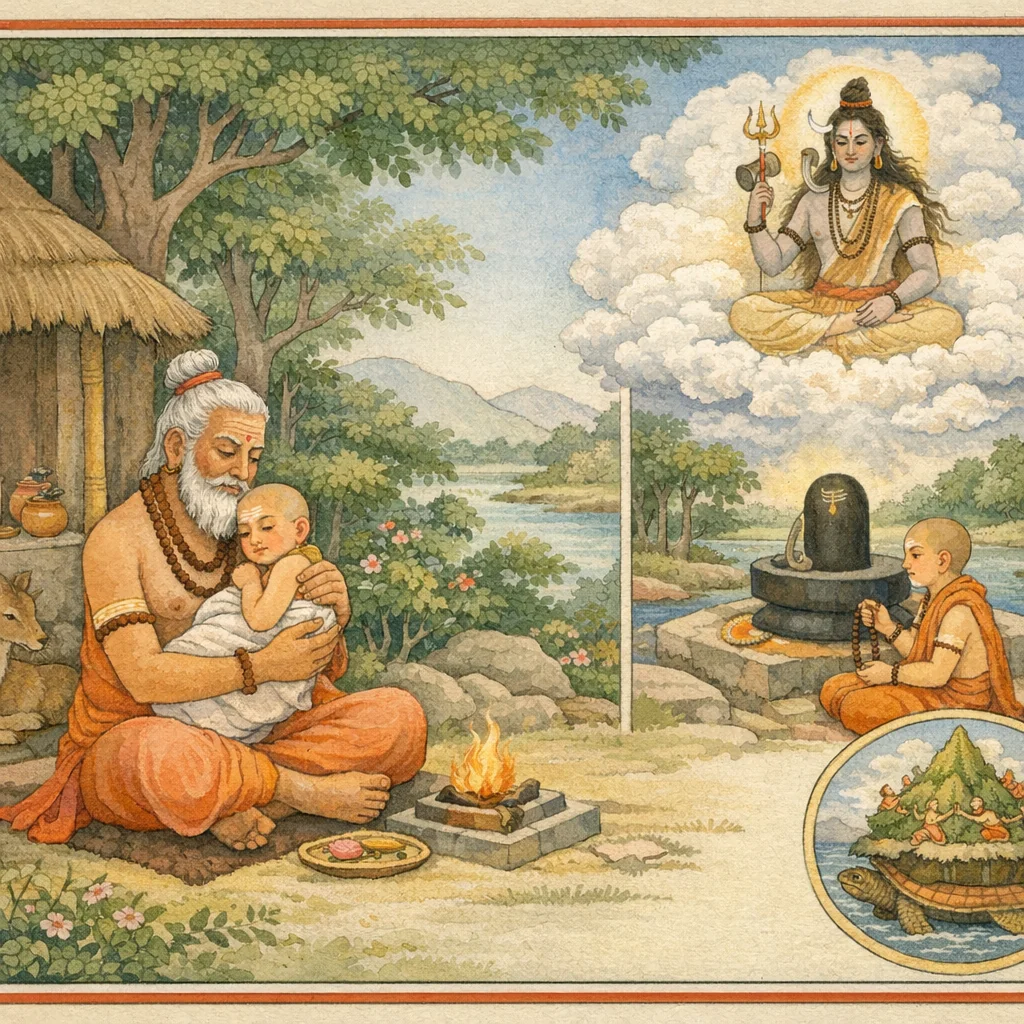 ധർമ്മാത്മാവായ ഒരു ഋഷി ഉണ്ടായിരുന്നു—ധർമ്മവിദനായ ‘ശിലാദ’ എന്ന പേരുള്ളവൻ—പുത്രാർത്ഥമായി വൃഷഭധ്വജനായ മഹാദേവനെ ആരാധിച്ചു.