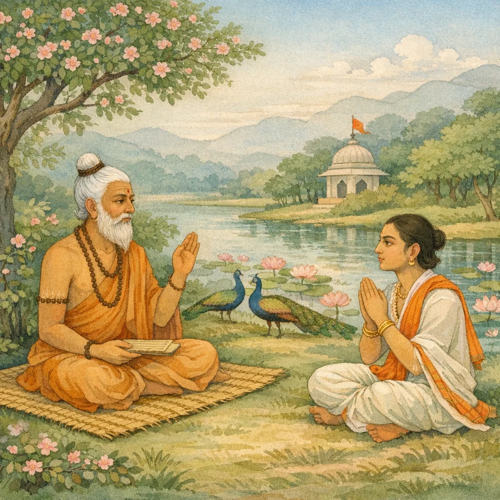 “മകനേ, ഈ ആശ്രമം തത്ത്വം അറിയുന്ന മുനിമാരാൽ ശോഭിക്കുന്നു; ഇത് ദിവ്യവൃക്ഷങ്ങളാൽ നിറഞ്ഞതും മൃഗക്കൂട്ടങ്ങളാൽ അലങ്കൃതവുമാണ്.”
