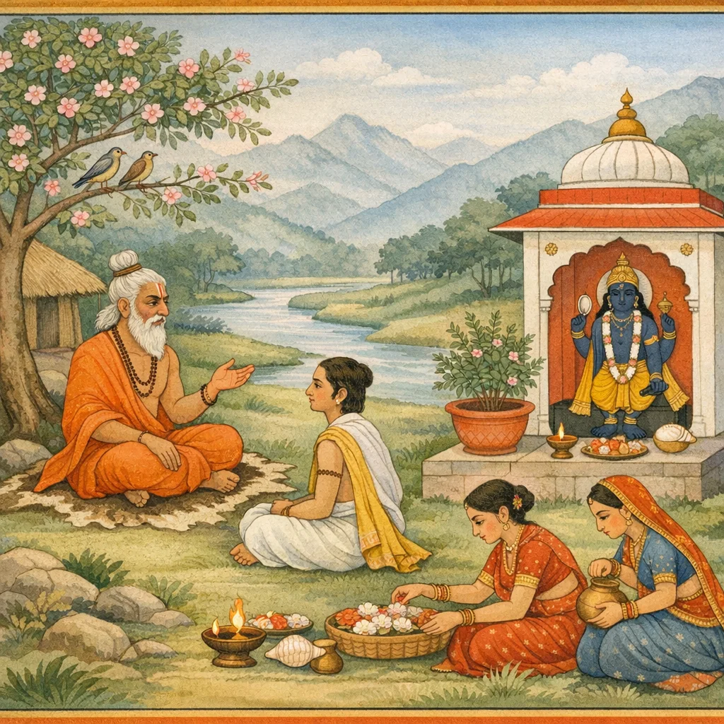 നിർമോഹൻ, ജിതകാമൻ, ധ്യാനകോശൻ, ഗുണാധികൻ—ഈ നാല് ബ്രാഹ്മണപുത്രന്മാർ ഗൃഹസ്ഥജീവിതത്തിൽ നിന്ന് വിരക്തരായിരുന്നു.