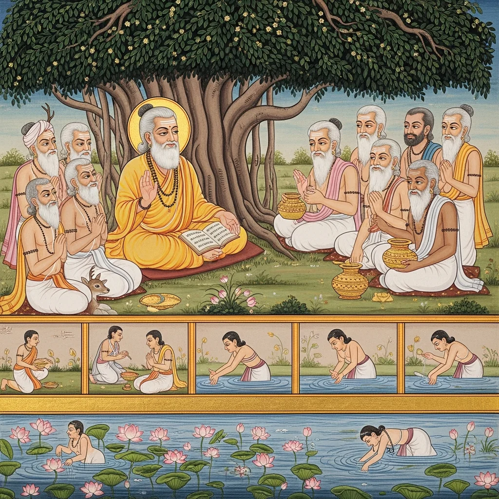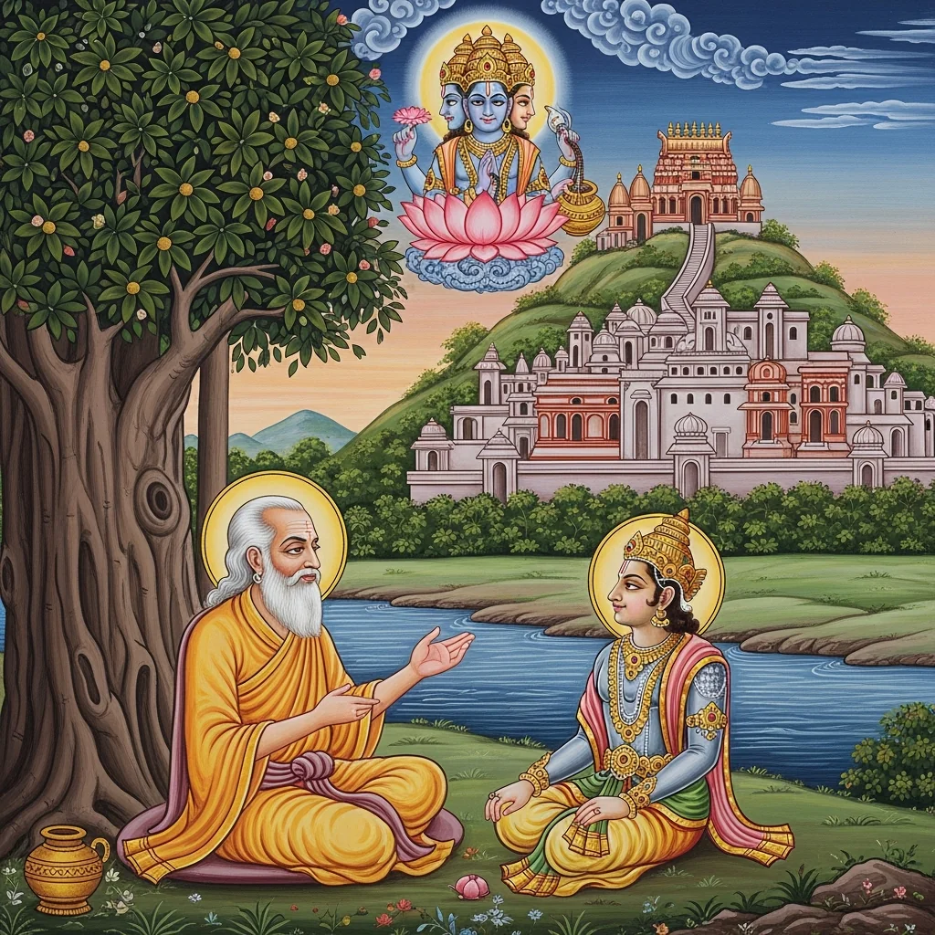अगस्त्य-शङ्खतपःप्रसादः, सौम्यरूपप्रादुर्भावः, सुवर्णमुखरी-माहात्म्यम् (Agastya & Śaṅkha’s tapas—divine grace, the gentle epiphany, and Suvarṇamukharī’s sanctity)