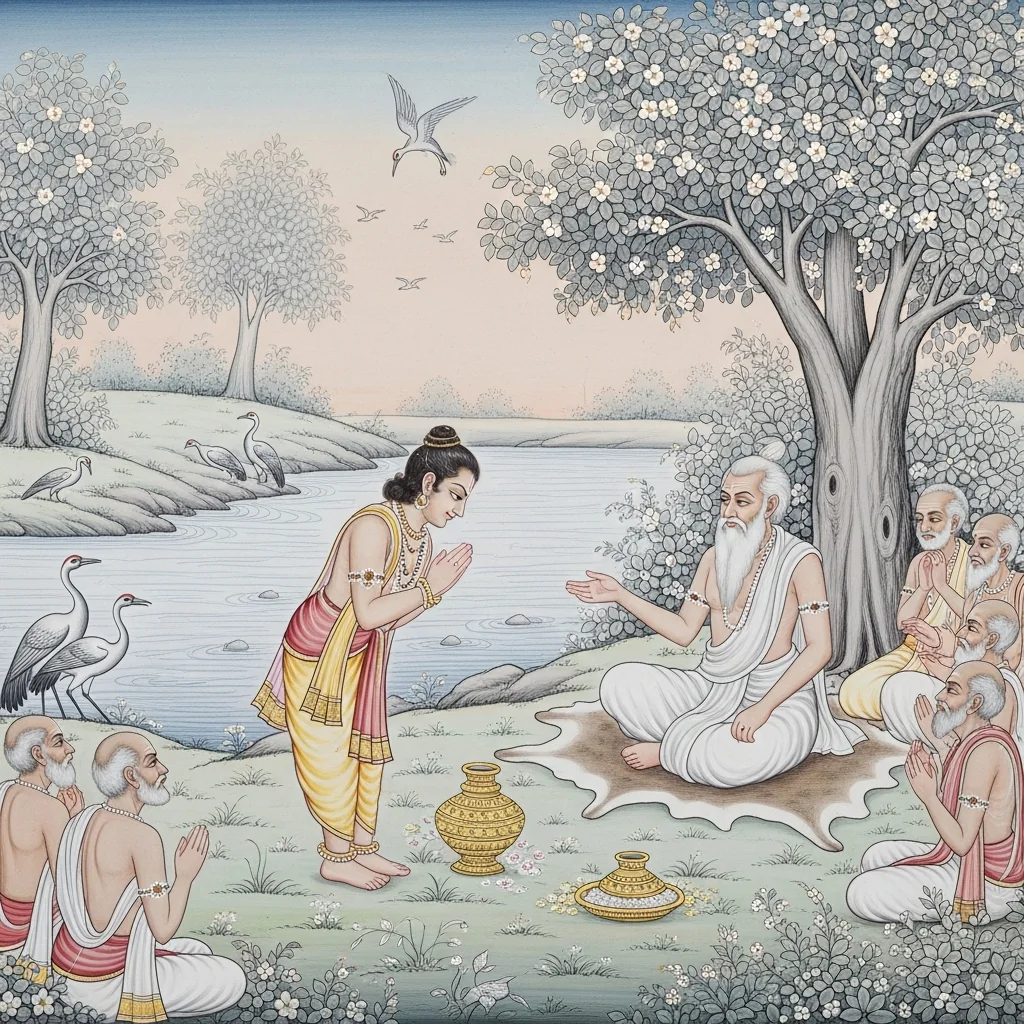 अर्जुन–भरद्वाजसंवादः । अगस्त्यदक्षिणगमनं च (Arjuna–Bhāradvāja Dialogue and Agastya’s Southward Journey)