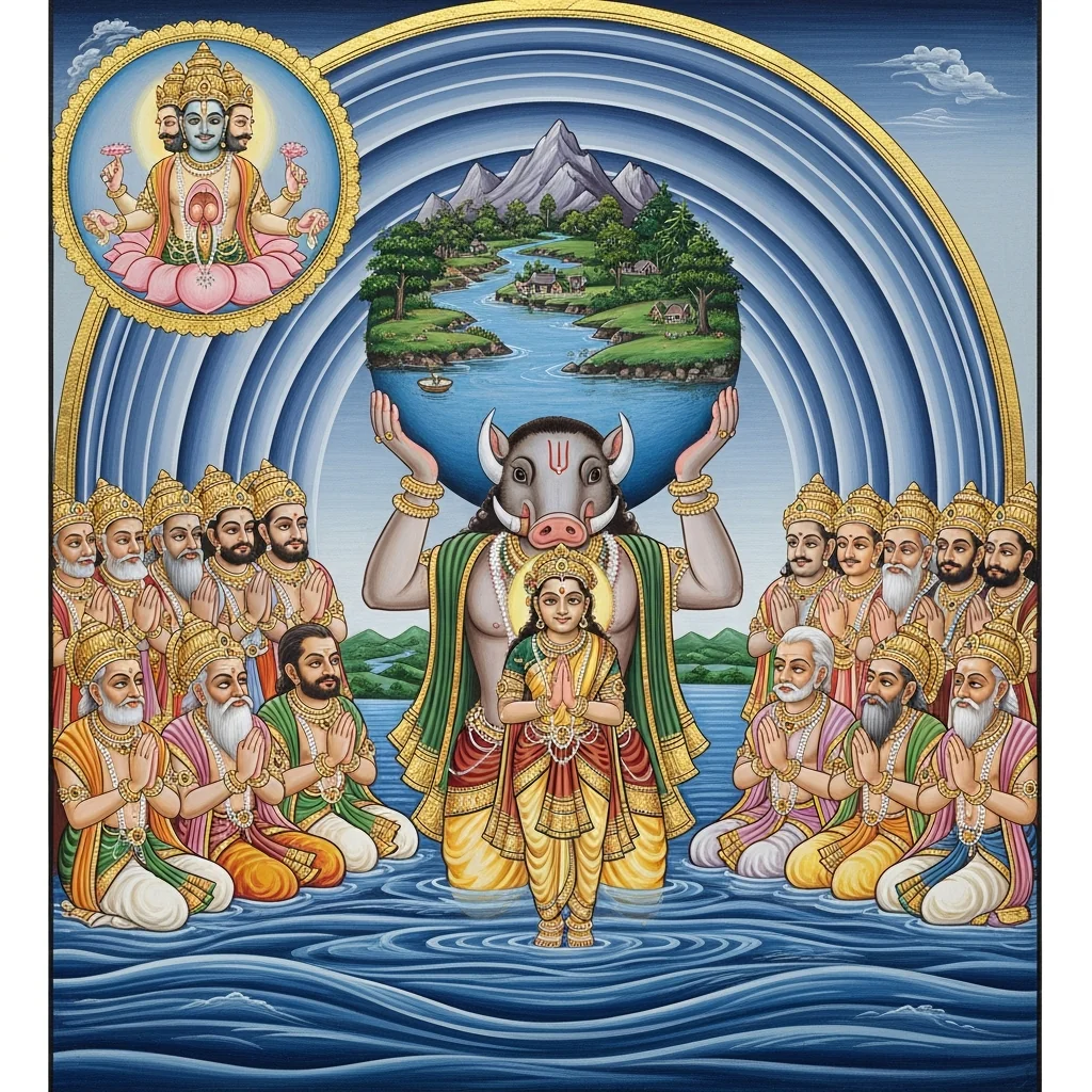 Varāha-kṛta-dharaṇyuddharaṇa-kramaḥ and Śvetavarāha-kalpa-vṛttānta (Varāha’s Raising of Earth and the White Boar Kalpa Account)