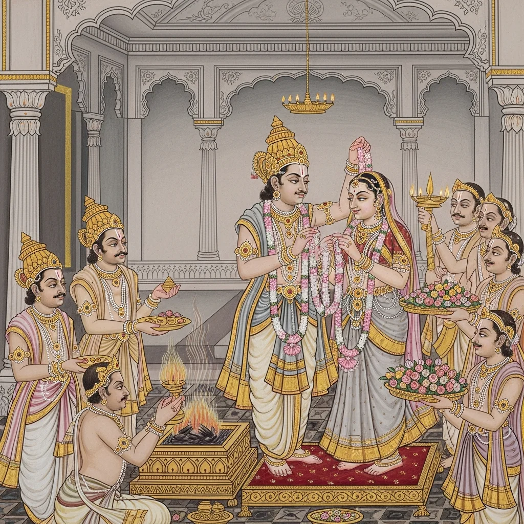 Śrīnिवासस्य लक्ष्म्यादिकृत-परिणयालंकारः — The Bridal Adornment and Marriage Procession of Śrīnिवास