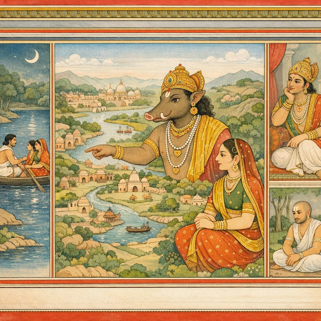 പ്രിയയുടെ വാക്കുകൾ കേട്ട് നരാധിപൻ മറുപടി പറഞ്ഞു— “അവശ്യം പറയേണ്ടതാണെങ്കിൽ, നാം മഥുരാ നഗരത്തിലേക്ക് പോകാം.”