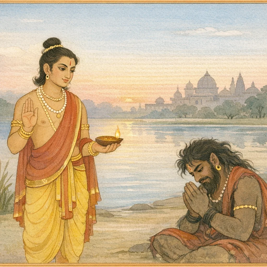 സുധനന്റെ വാക്കുകൾ കേട്ട് രാക്ഷസൻ ചിരിച്ച് പറഞ്ഞു—“നീ എന്നെ തിരിച്ചറിയുന്നില്ലേ? ഞാൻ നിന്റെ അയൽവാസി തന്നെയാകുന്നു.”