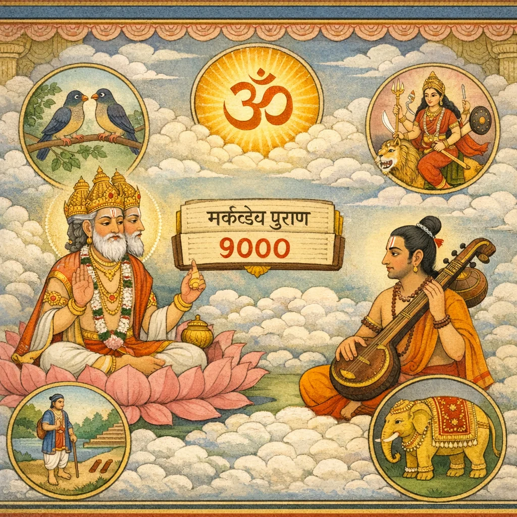ज्यात पक्ष्यांना आधार करून सर्व धर्मांचे निरूपण केले आहे, ते ‘मार्कंडेय पुराण’ होय; असे म्हणतात की त्यात नऊ हजार श्लोक आहेत।