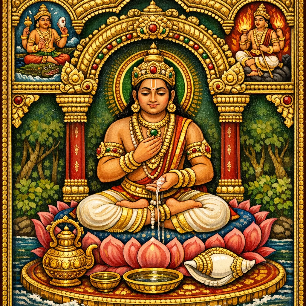 Sesudah menunaikan pemujaan Astra-sandhyā, hendaklah ia kemudian melaksanakan mandi ritual yang ditetapkan menurut vidhi. Dan dengan satu Aṅkuśa-mudrā sahaja, (seseorang) dapat memperoleh upacara/hasil bagi tīrtha-tīrtha suci bermula dengan Sārasvata tīrtha.