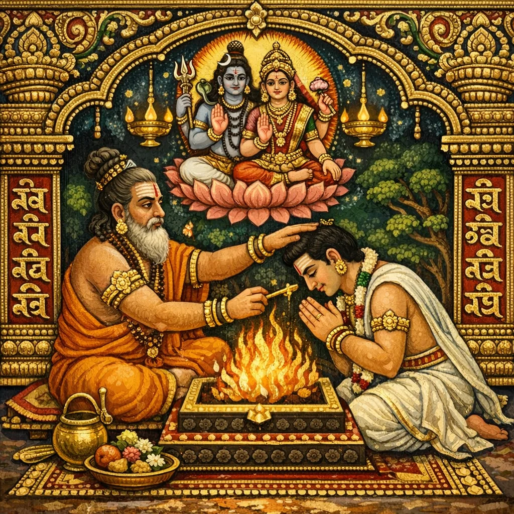 Dalam upacara/ketetapan ini yang sentiasa diisytiharkan dan masyhur, aku menginisiasikan pencari pembebasan. Apa yang harus dilakukan hendaklah engkau persembahkan (kepada guru/dewa) dengan sikap yang menyenangkan dan dengan bhakti—demikianlah dinyatakan.
