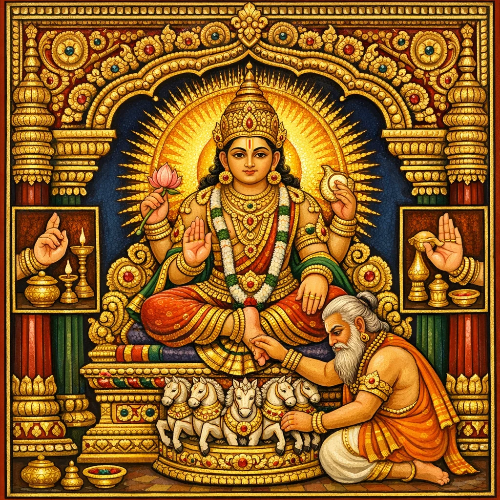 Setelah menegakkan Śakti yang “sarvatomukhī” (menghadap ke segala arah) menurut tatacara, sang guru hendaklah, dengan tangannya sendiri dan menurut ketetapan ritual, menegakkan Sūrya—yang disertai Śakti sebagai kuasa/pendampingnya.