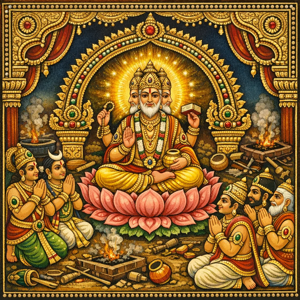Para dewa Tridasa yang terhalang daripada persembahan havya dan kavya, bersama para Pitri, dilanda dukacita besar lalu pergi ke kediaman Virinci (Brahma).
