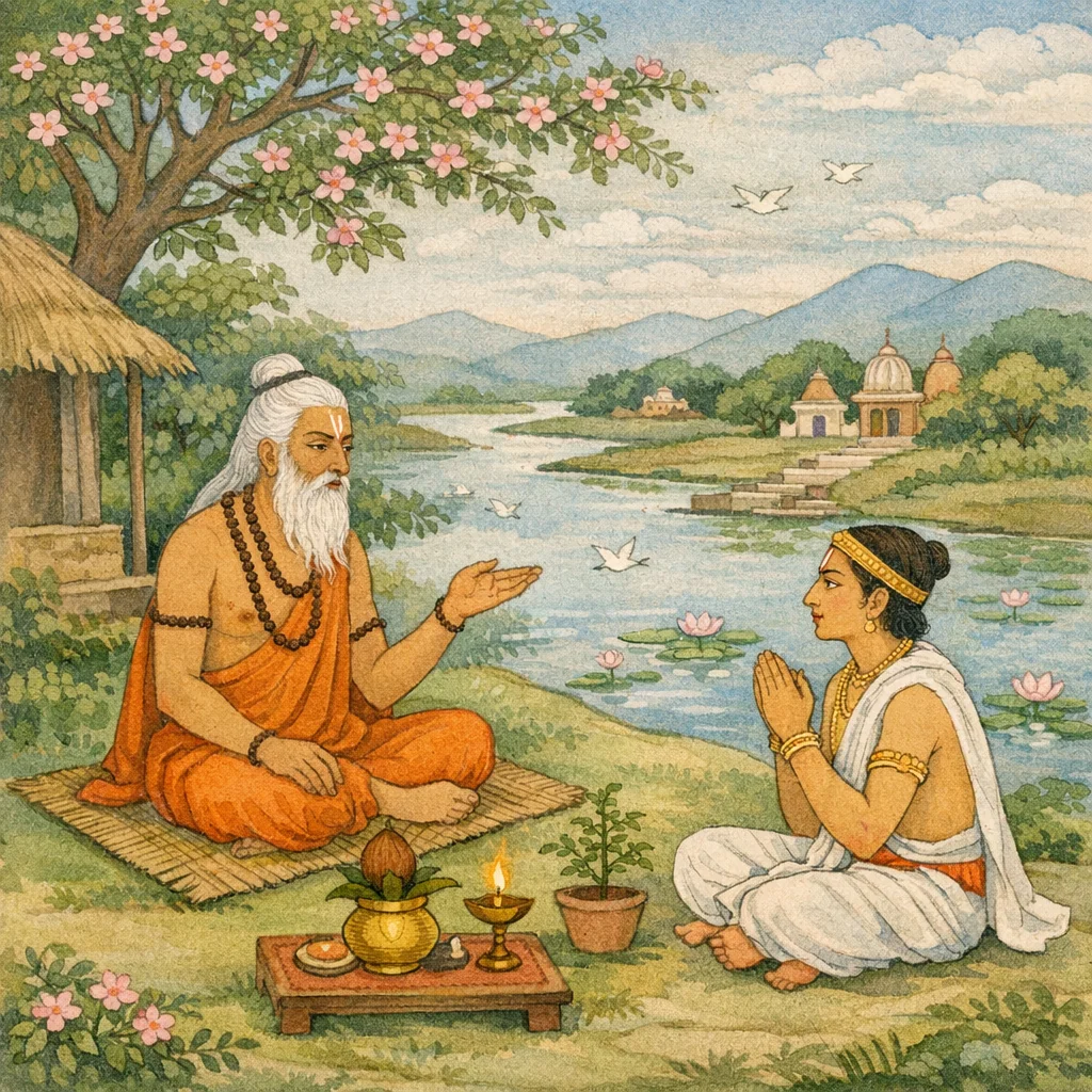 Wahai Maharaja, setelah mencapai siddhi, dengarkanlah apa yang akan aku kisahkan: tempat di mana sungai Kaverī bertemu dengan sungai Narmadā, yang termasyhur di seluruh dunia.