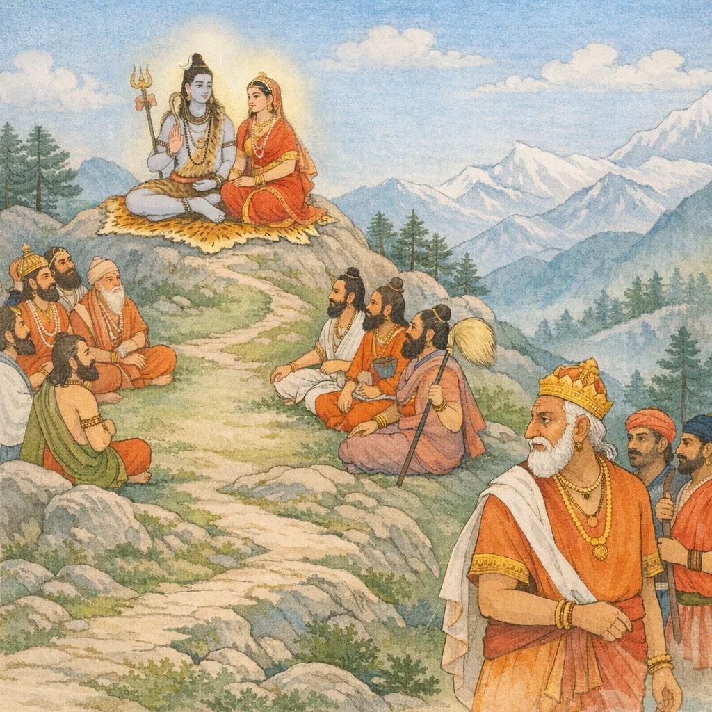 Pada zaman dahulu, semua dewa dan asura, bersama para siddha yang telah sempurna serta para resi agung, pada suatu ketika pergi ke puncak Himālaya untuk menatap Īśāna—Tuhan Śiva, Penguasa Yang Maha Berdaulat.
