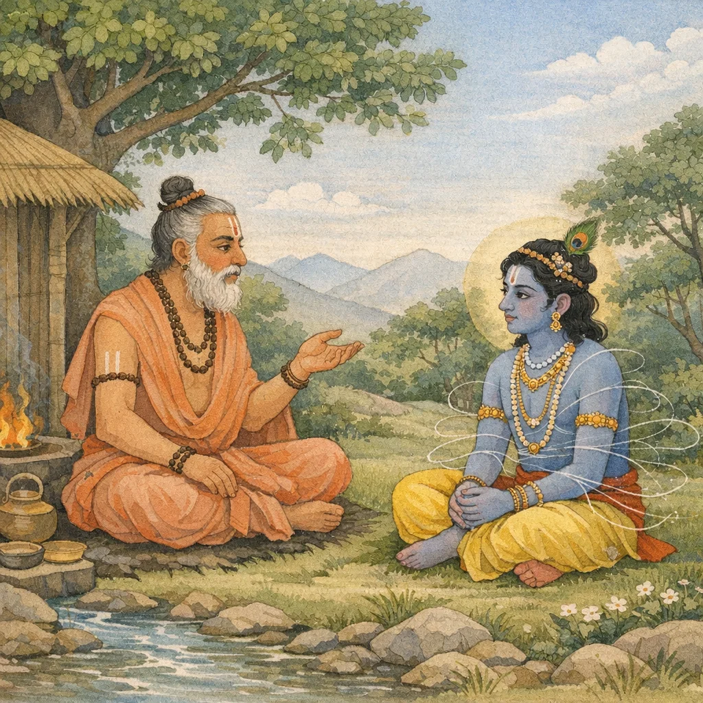 Śrī Kṛṣṇa berkata: “Wahai Tuhan, engkau telah menerangkan keagungan mantra ilahi. Kini, ajarkanlah kepadaku tata cara penerapannya dalam amalan—sebagaimana adanya, setara kewibawaannya dengan Veda.”