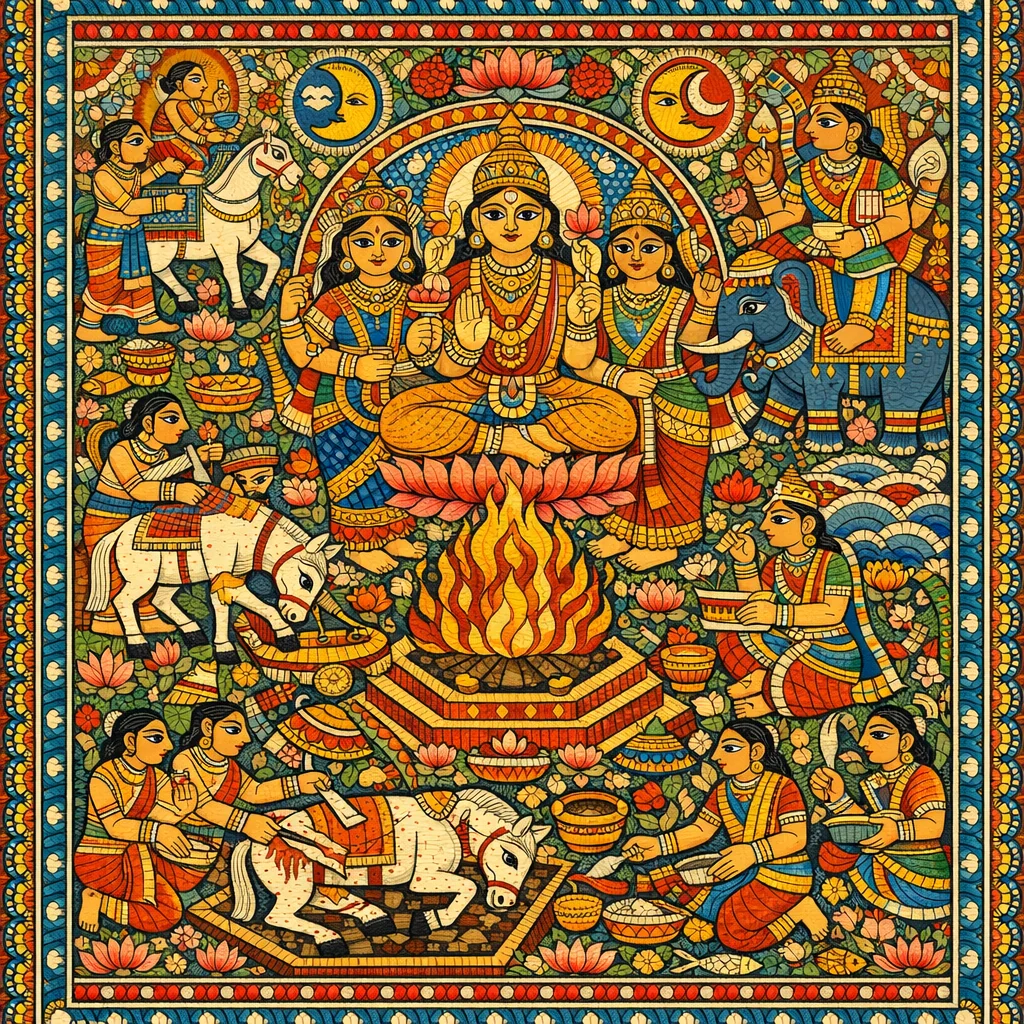 Ashvamedha conclusion and Purushamedha.