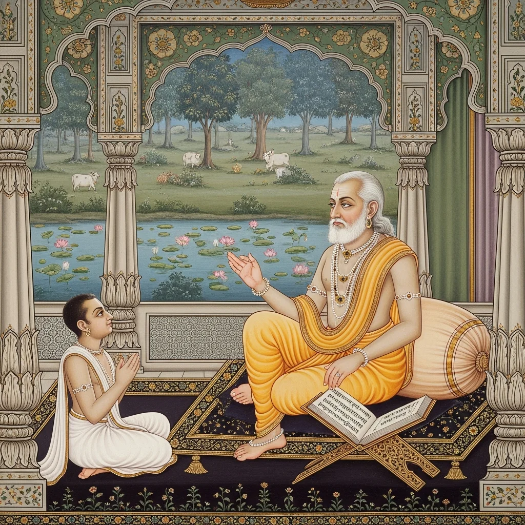 Although presented as a textual “māhātmya” (glorification) of the Bhāgavata-oriented tradition, the narrative is anchored in the Braj–Mathurā region (Mathurāmaṇḍala/Vraja-bhūmi). It references royal movement from Hastināpura to Mathurā, and situates devotional meaning in specific locales such as Govardhana, Mahāvana, Nandagrāma, and related river-mountain-grove micro-geographies (nadī, adri, kuṇḍa, kuñja). The section thus functions as a cartographic theology: it explains why the land appears “empty” at times (adhikāra/eligibility discourse) while simultaneously prescribing settlement and service as modes of sustaining sacred space.