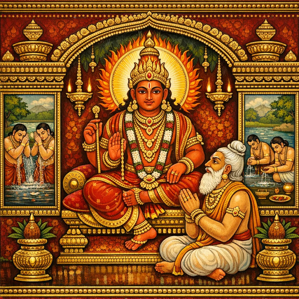 ထို့ကြောင့် တီရ္ထ (tīrtha—သန့်ရှင်းသော ရေကူးကန်/မြစ်ကူးရာ) ၏ရေသည် ပုဏ္ဏရှိပြီး၊ ဂင်္ဂါ (Gaṅgā) ၏ရေသည် ဘက်ပေါင်းစုံမှ သန့်စင်ပေးသော အလွန်ပုဏ္ဏရှိသည်။ အညစ်အကြေးကို အရင်ဆုံး သန့်စင်ဖယ်ရှားပြီးနောက် ရေကန်/ရေသိုလှောင်ရာတွင် ကိုယ်ကို နှစ်မြှုပ်ရမည်။