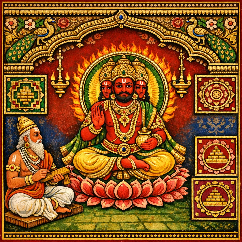 ଛନ୍ଦ-ଅଧିକାରରେ ଭଗବାନ ଅଗ୍ନି ଗାୟତ୍ରୀକୁ ବୈଦିକ ଛନ୍ଦମାନଙ୍କର ମୂଳ-ମାତୃକା ଭାବେ ନିରୂପଣ କରନ୍ତି। ଗାୟତ୍ରୀକୁ ଏକାକ୍ଷର ବୀଜରୂପ, ପନ୍ଦର-ଅକ୍ଷର ମନ୍ତ୍ରରୂପ ଏବଂ ଅଷ୍ଟାକ୍ଷର ପ୍ରାଜାପତ୍ୟ-ସମ୍ବଦ୍ଧ ରୂପରେ ମଧ୍ୟ ଗ୍ରହଣ କରାଯାଇପାରେ। ବୈଦିକ ପ୍ରୟୋଗଭେଦେ ତାହାର ଅକ୍ଷରମାପ ଭିନ୍ନ—ଯଜୁଃ ସୂତ୍ରରେ 6, ସାମଗାନରେ 12, ଋଗ୍ବେଦ ଋଚାରେ 18; ସାମର ଛନ୍ଦ ଦୁଇ-ଦୁଇ ଅକ୍ଷରେ ବଢ଼େ ବୋଲି ନିୟମ। ପରେ—ଋକ୍-ମାପରେ ‘ଚତୁର୍ଥ’ ବୃଦ୍ଧି ମଧ୍ୟ ଅନୁମୋଦିତ; ପ୍ରାଜାପତ୍ୟ ଚାରି-ଚାରି କରି ବିସ୍ତାରିତ; ଅନ୍ୟ ଛନ୍ଦ ଏକ-ଏକ କରି ବଢ଼େ; ଆତୁର୍ୟାରେ କ୍ରମଶଃ ଲୋପର ବିଶେଷ ବିଧି। ଉଷ୍ଣିକ୍, ଅନୁଷ୍ଟୁଭ୍, ବୃହତୀ, ପଙ୍କ୍ତି, ତ୍ରିଷ୍ଟୁଭ୍, ଜଗତୀ—ଏହି କ୍ରମକୁ ଗାୟତ୍ରୀର କ୍ରମିକ ପ୍ରସାର ଓ ବ୍ରାହ୍ମଣ-ସ୍ୱଭାବ ବୋଲି କହି ଛନ୍ଦଶାସ୍ତ୍ରକୁ ପବିତ୍ର କରାଯାଇଛି। ଶେଷରେ ‘ତିନି-ତିନି’ ଗୋଷ୍ଠୀକରଣ, ଏକକକୁ ‘ଆର୍ୟା’ ସଂଜ୍ଞା, ଋଗ-ଯଜୁଃ ପାଇଁ ପ୍ରାଯୁକ୍ତିକ ନାମ ଏବଂ 64-ପଦ ଗ୍ରିଡରେ ଲେଖନ ପ୍ରଣାଳୀ ଦିଆଯାଇଛି।
