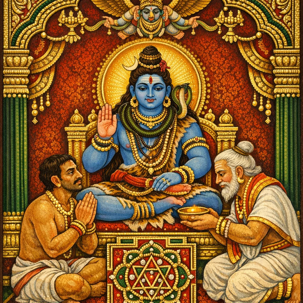 It frames healing as dharma-sādhana: devotion to Nīlakaṇṭha/Rudra and disciplined mantra-dhyāna are presented as life-protecting powers, aligning medical action (bhukti) with purity, restraint, and sacred speech that support inner steadiness and spiritual progress (mukti).