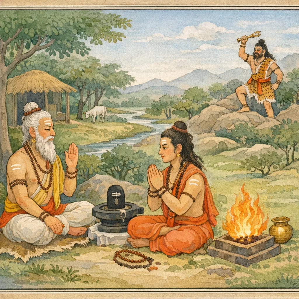 Bhargava teaches a Shiva-centered regimen: worship of Tryambaka (Shiva), recitation of the Mṛtasañjīvanī/Tryambaka formula, and disciplined practice of japa, homa, abhi-mantrita water (sanctified water), and dhyāna performed in the presence of the Shiva Linga.