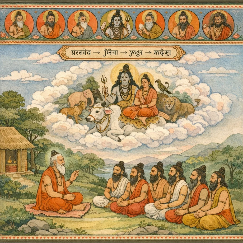 ਸ਼ਾਲਿਹੋਤ੍ਰ, ਅਗਨਿਵੇਸ਼, ਯੁਵਨਾਸ਼ਵ, ਸ਼ਰਦਵਸੂ, ਛਗਲ, ਕੁੰਡਕਰਨ, ਕੁੰਭ ਅਤੇ ਪ੍ਰਵਾਹਕ—ਇਹ ਵੀ ਸ਼ਿਵ ਦੇ ਯੋਗਿਕ ਪ੍ਰਵਾਹ ਦੀ ਪਰੰਪਰਾ ਵਿੱਚ ਗਿਣੇ ਜਾਂਦੇ ਹਨ; ਜਿਨ੍ਹਾਂ ਦੇ ਅਨੁਸ਼ਾਸਨ ਨਾਲ ਬੱਝਿਆ ਜੀਵ (ਪਸ਼ੂ) ਪਤੀ ਸ਼ਿਵ ਵੱਲ ਲਿਜਾਇਆ ਜਾਂਦਾ ਹੈ।