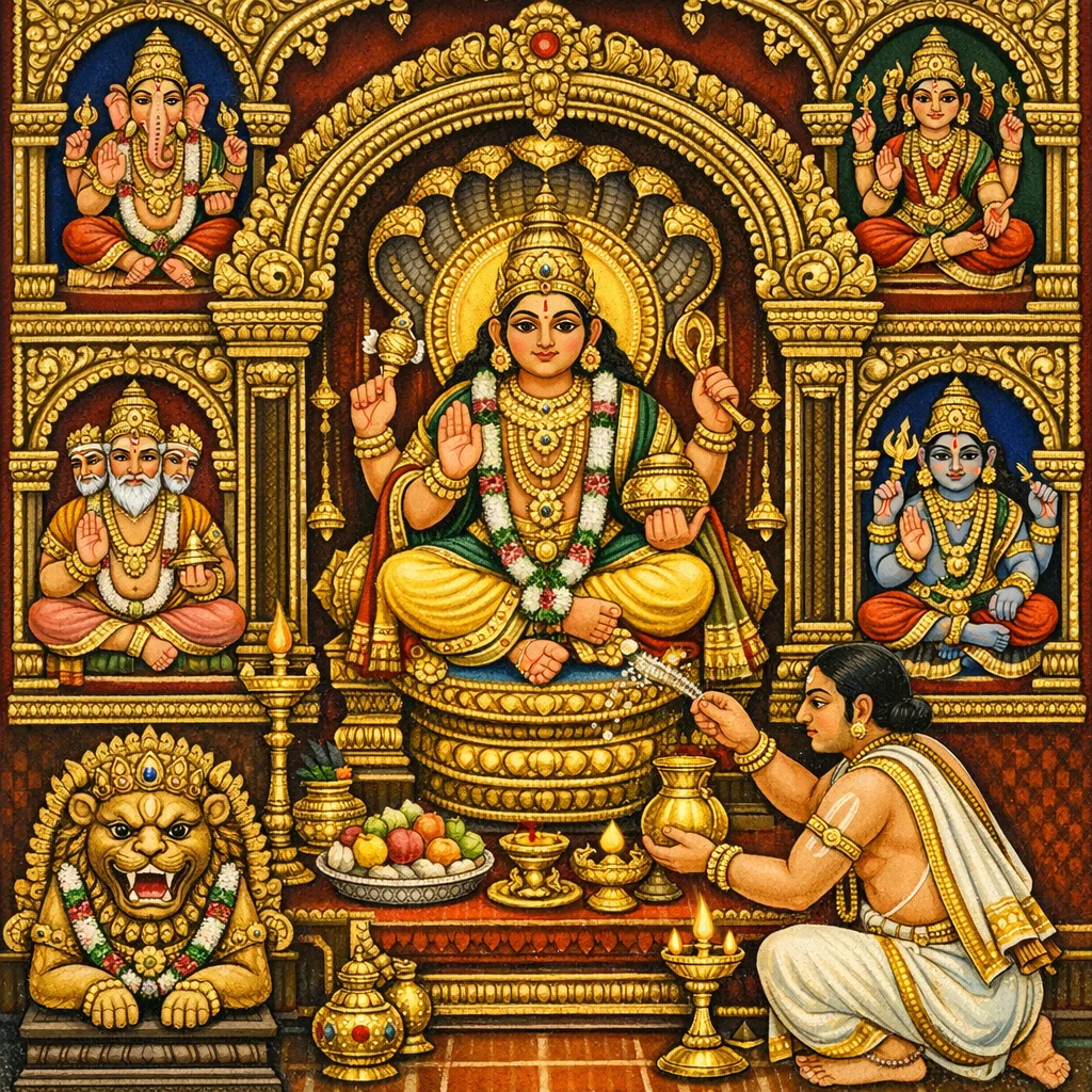 It ritualizes technical acts—directional placement, material selection, tool consecration, protection and appeasement rites—so that craftsmanship and temple-building become disciplined dharmic action aligned with mantra, purity, and devotion.