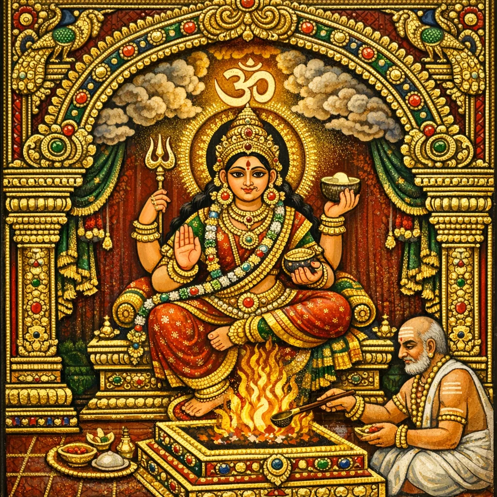 Em seguida prescreve-se o rito expiatório: realizar um dāha (queima/homa) como penitência por aquela omissão de sílabas; e depois, a invocação (āvāhana) de Rudrāṇī, sua adoração, e a oferta de forma (imagem/manifestação) e fragrância.