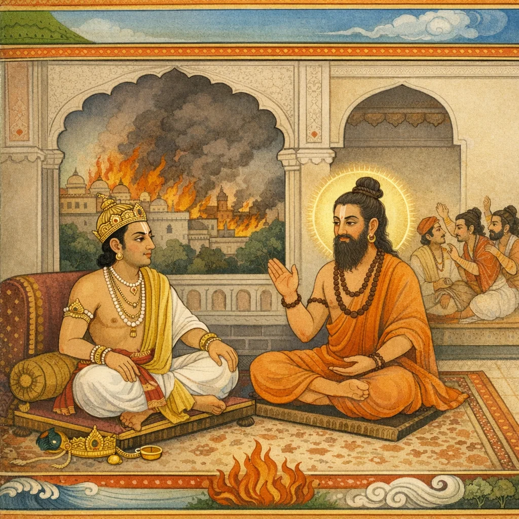 Além disso, canta-se acerca do rei de Mithilā: ao ver sua cidade tomada pelo fogo, o próprio soberano teria declarado: “De fato, nada do que é meu está sendo queimado aqui.”