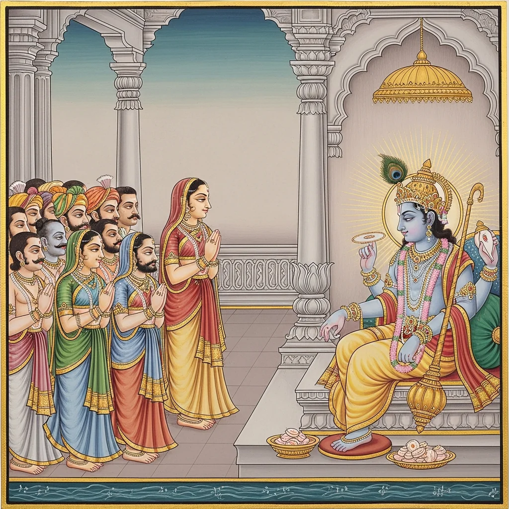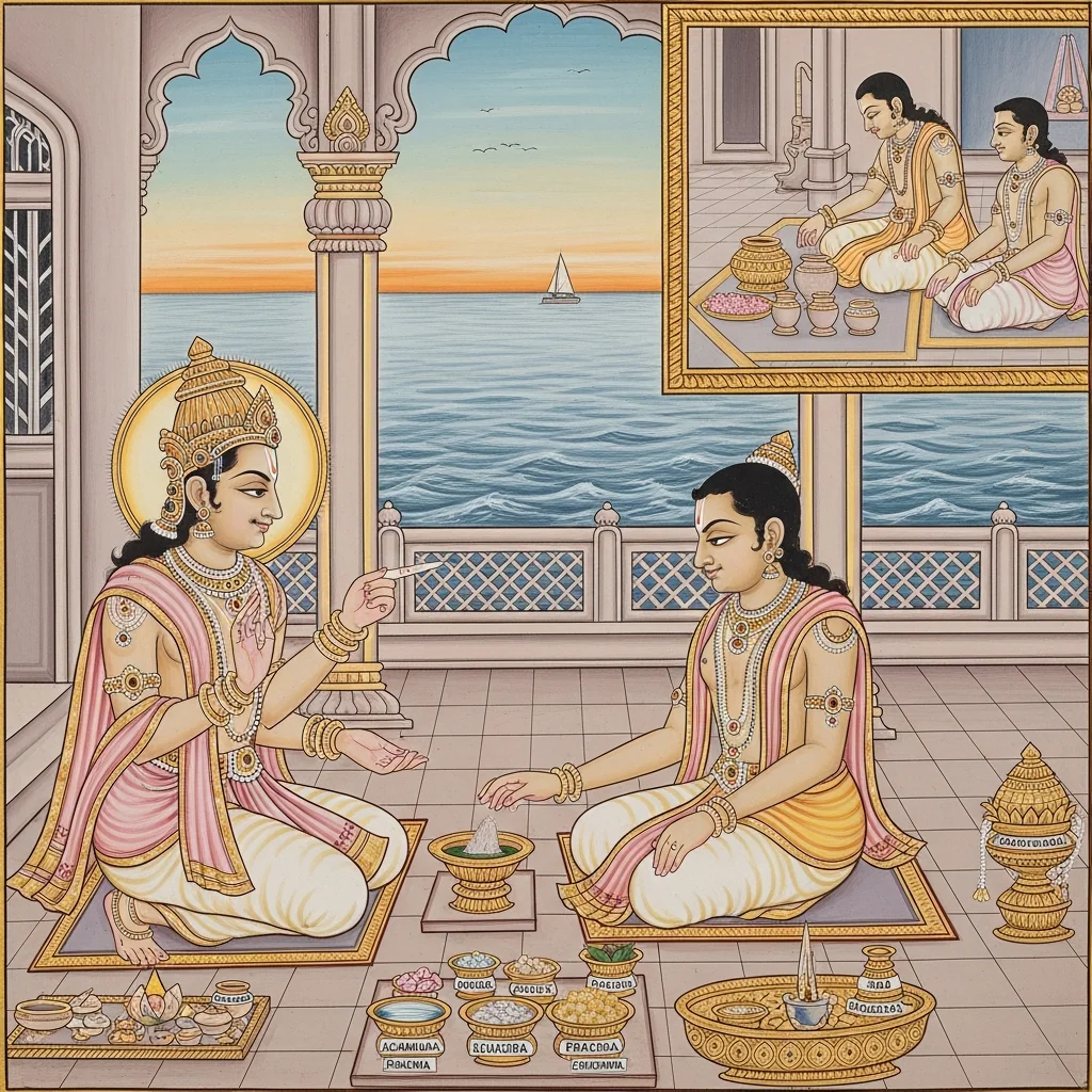 Dvārakā-dvārapāla-pūjākramaḥ (Ritual Sequence of Dvārakā’s Gate-Guardians and the Approach to Kṛṣṇa)