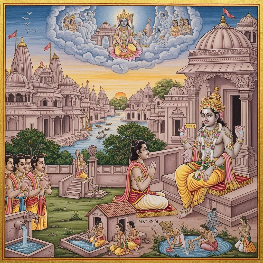 It emphasizes Dvārakā as a sanctified civilizational and devotional center tied to Kṛṣṇa’s presence and legacy, with Prabhāsa functioning as a consequential sacred node where epic-era transitions are narrated and ritually remembered.