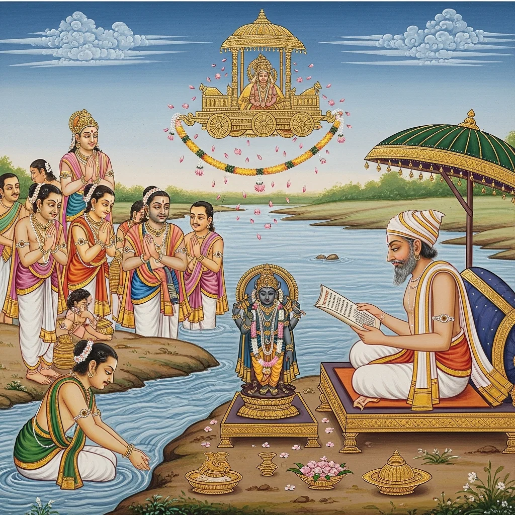 त्रिविक्रम-दर्शन-समफलत्व-प्रशंसा तथा दुर्वाससो मुक्तितीर्थ-प्रसङ्गः (Trivikrama Darśana and the Durvāsā at the Mokṣa-Tīrtha Episode)