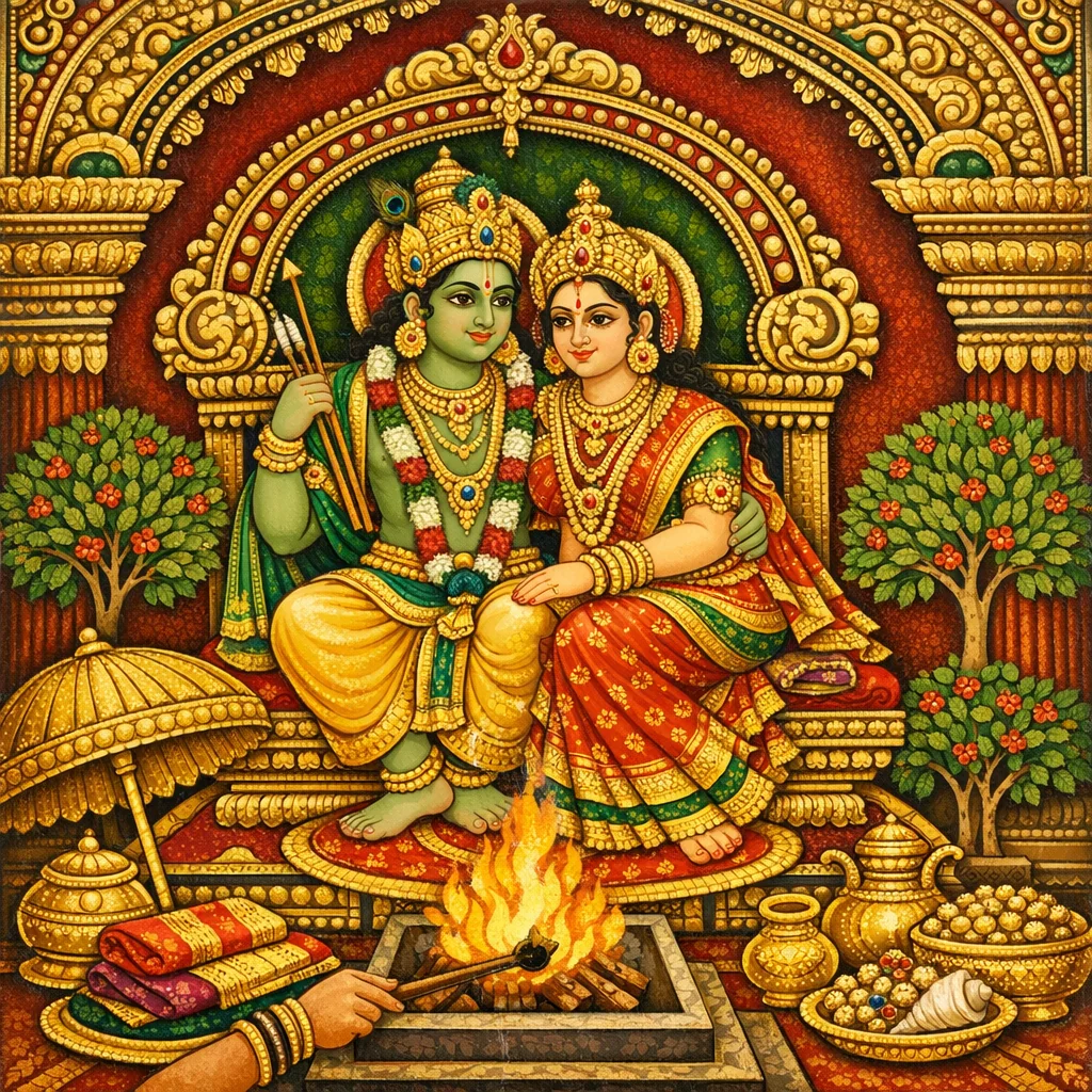 In Caitra bright Trayodaśī it prescribes remembering Kāma with Rati and drawing an aśoka tree with vermilion and turmeric—an auspicious fertility/joy symbol—followed by a half-month worship for kāma-siddhi.